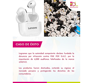 Logramos un nuevo resultado a favor de nuestro cliente LENOVO, reafirmando nuestro compromiso con la defensa de los derechos de propiedad intelectual y la lucha constante contra la falsificación en el mercado peruano.